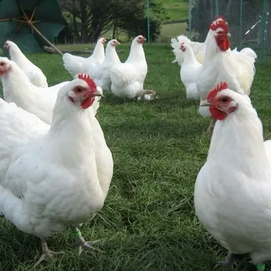 ALSO KNOWN AS: Snowbelles, Snow Whites, White Leghorn hybrid.
