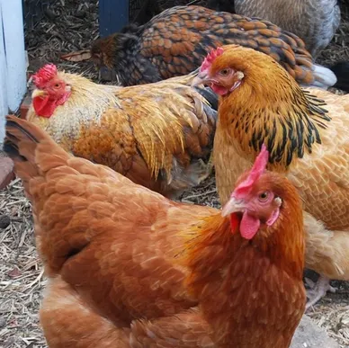 COLOUR: Traditional brown hens with white neck & tail feathers.